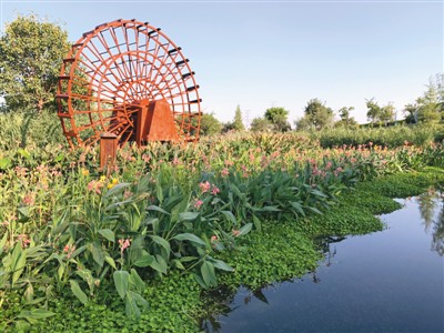 我們來到那考河濕地公園,一江碧水蜿蜒流向遠處,循著綠植鮮花組成的梯田走近河邊,魚兒在清澈的河水中嬉戲,市民游人駐足棧道,涼亭、水車交相輝映。桂花朱瑾美人蕉,十里江畔暗香涌,一幅人與自然的和諧畫面展現在眼前。