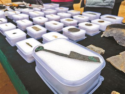現(xiàn)場(chǎng)還展示了2019年以來(lái)考古工作出土、采集的青銅環(huán)首刀、骨器、陶器等遺物。王晶特別展示了一組從土層中發(fā)掘出的植物種子。“我們考古隊(duì)利用科技考古手段,對(duì)發(fā)掘出土的自然遺物開展了植物考古分析,出土了大量炭化植物種子,包括粟、黍、小麥、大豆、大麥等,這些都反映出琉璃河先民以粟、黍?yàn)榇淼暮底鬓r(nóng)業(yè)生產(chǎn)生活方式。”據(jù)了解,近年來(lái)考古工作出土、采集出了青銅環(huán)首刀、銅箭鏃、玉玦、綠松石及石器、骨器、陶器等遺物數(shù)百件,陶片兩萬(wàn)余片,表現(xiàn)出本地燕文化、周文化和商文化多種文化因素特征。