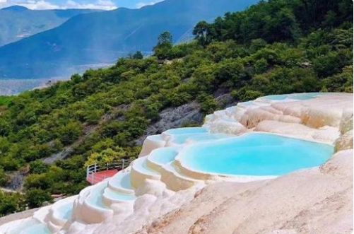 白水臺位于哈巴雪山麓,香格里拉縣城東南的三壩鄉白地村,距縣城101公里,海拔2380米,是納西族東巴教的發祥地。它是由于碳酸鈣溶解于泉水中而形成的自然奇觀。含碳酸氫鈣的泉水慢慢下流,碳酸鹽逐漸沉淀,長年累月就形成臺幔,好似層層梯田,被稱為“仙人遺田”,面積約3平方公里,它是我國最大的華泉臺地