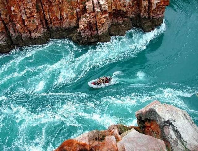 乘坐觀光飛機或租船巡航才可以在最佳的視野欣賞到湍急的海水在崎嶇不平的紅色山丘中奔流而過。