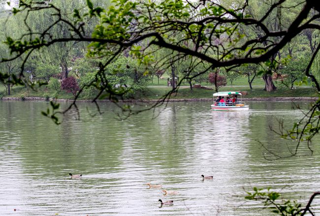 瘦西湖上的小船悠悠,煙柳,碧桃,拱橋,亭閣,一切都和畫中的風景一般無二。精致婉約,細膩嬌美。熙春臺前、五亭橋上,游客們撐著花花綠綠的傘,構成一道獨特的風景線。湖上穿梭的畫舫、花葉上滾動的水珠、雨中嬉戲的黑天鵝……細雨霏霏的五一小長假,給多愁善感的揚州城籠上一層輕紗,更添一層嫵媚,讓你心動。